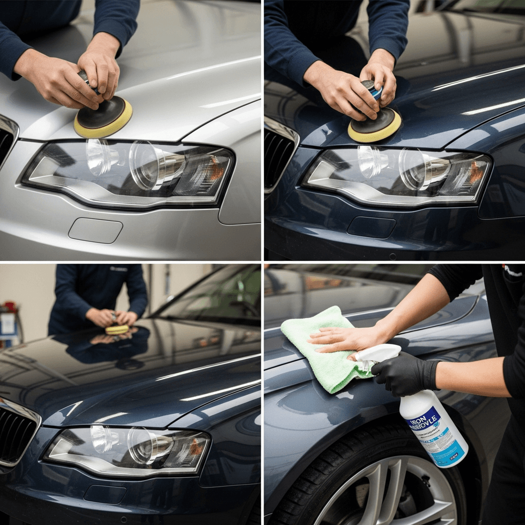 ヘッドライト黄ばみ除去+ボディ鉄粉除去で輝き復活!