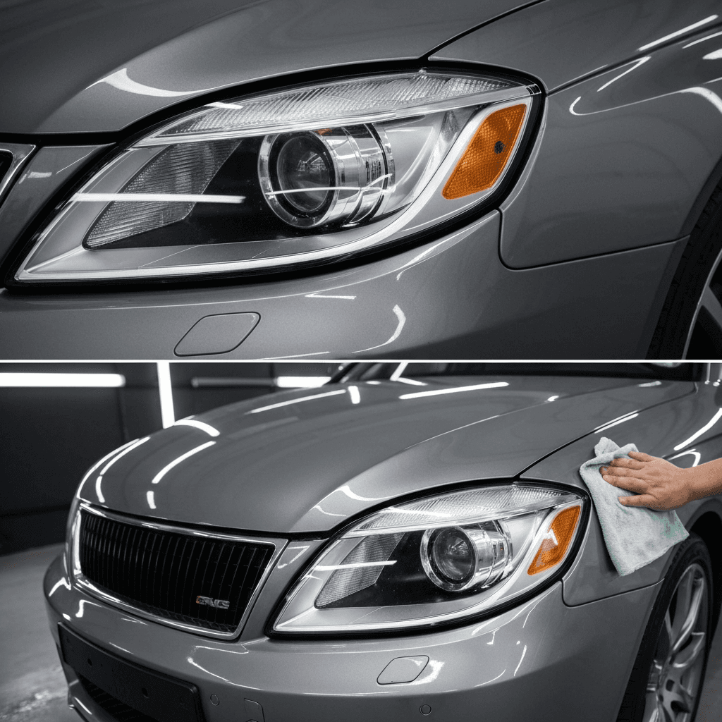 RS4アバントはヘッドライトの黄ばみとボディの鉄粉が第一印象を損ねます。研磨+鉄粉除去クリーナー+ワックスで輝きを取り戻せば「程度良好」と判断され+4~7万円の効果。