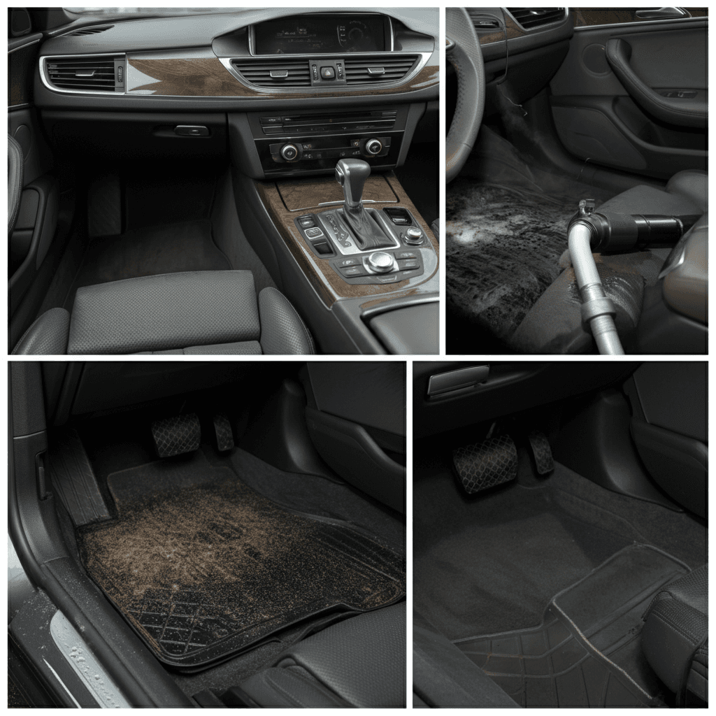 RS7スポーツバックは第一印象が査定の8割を決めます。シート隙間のゴミ除去、マット洗浄、樹脂パーツ艶出しで新車級の清潔感に。特に臭いゼロなら「禁煙車」扱いで+5~8万円UP。