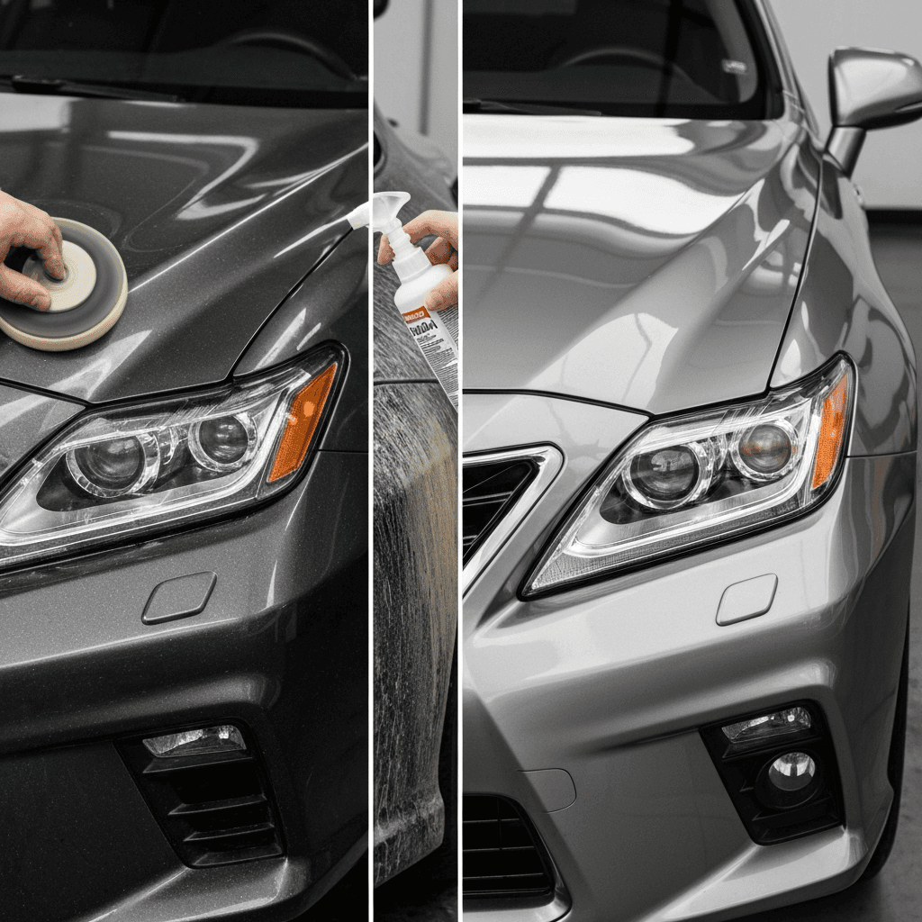 RXはヘッドライトの黄ばみとボディの鉄粉が第一印象を損ねます。研磨+鉄粉除去クリーナー+ワックスで輝きを取り戻せば「程度良好」と判断され+4~7万円の効果。