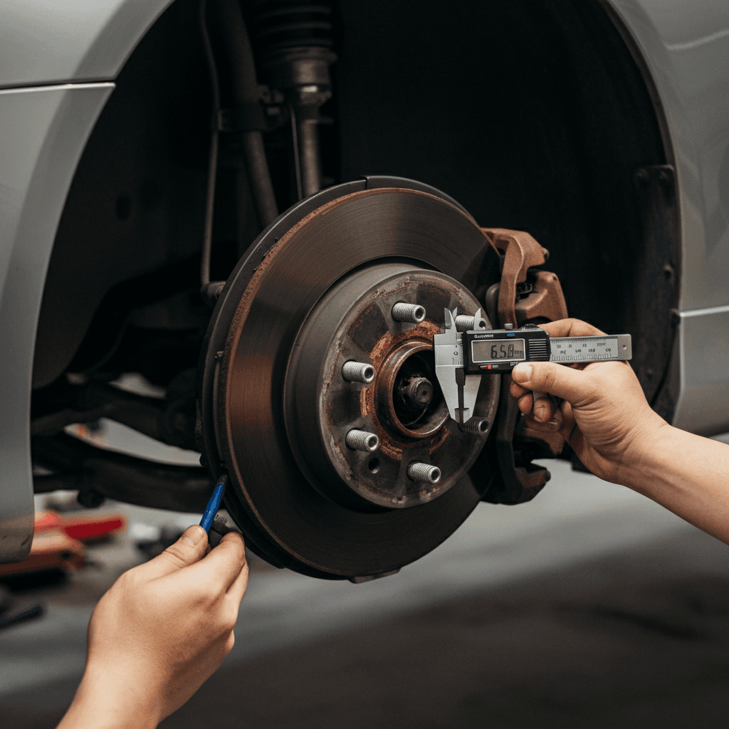 スポーツカーはブレーキとタイヤが査定の最重要項目。パッド残量6mm以上、タイヤ溝5mm以上を写真+ノギス測定値で証明すれば、「走行性能良好」の安心感を与え+8~12万円の評価UP。