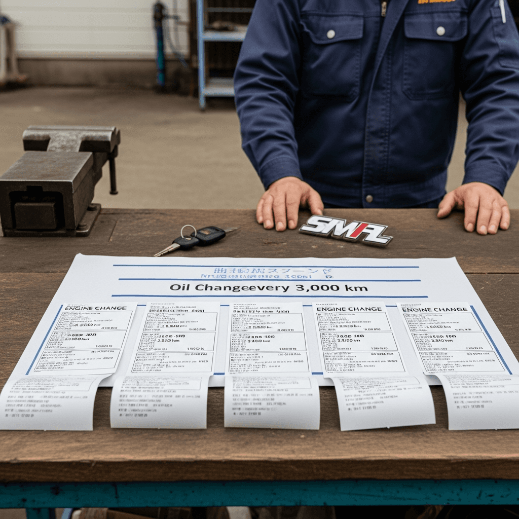 エンジンオイル交換3,000km毎の証明書で信頼獲得!