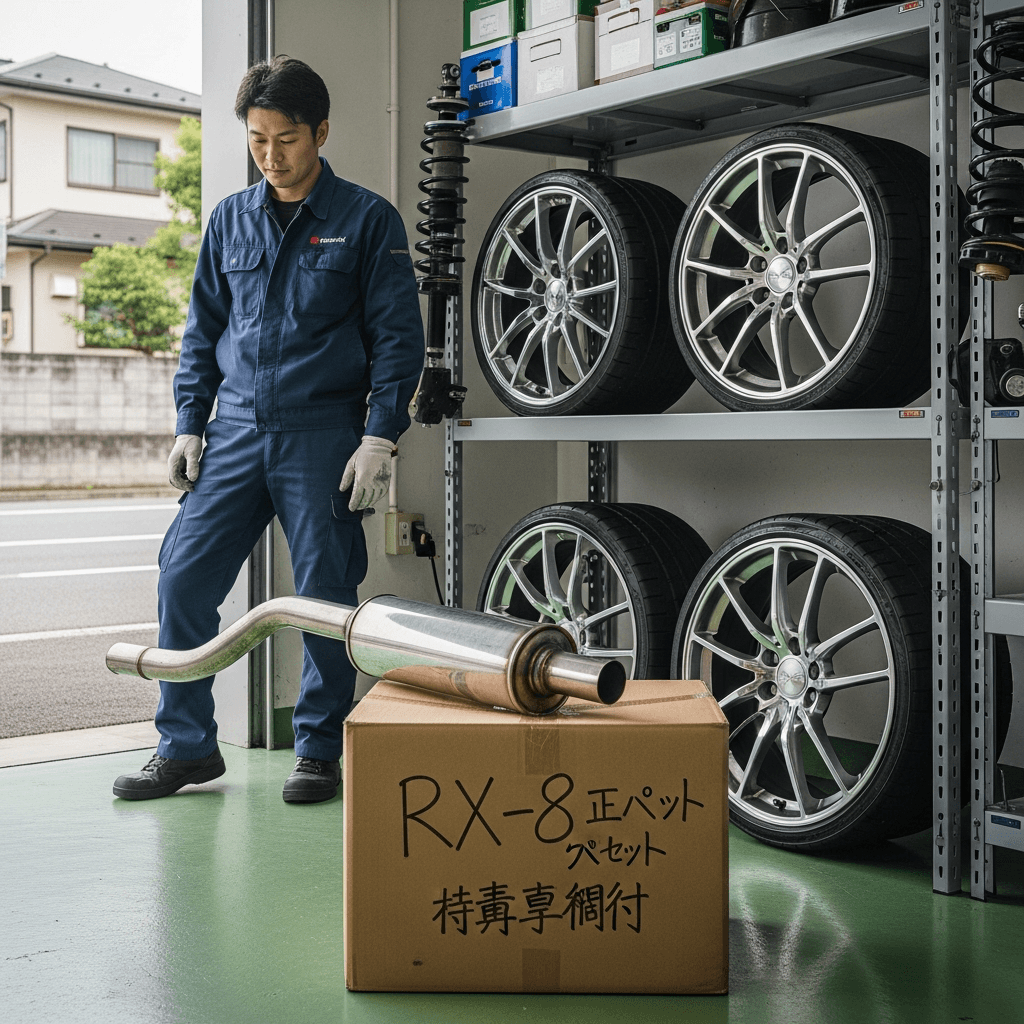RX-8はカスタム車両が多いですが、純正マフラー・サスペンション・ホイールが保管されていれば査定額は下がりません。「純正戻し可能」をアピールすることで+7~10万円の価値創出。