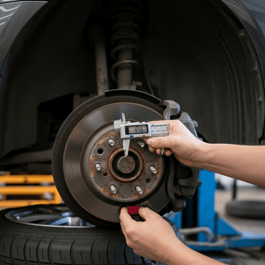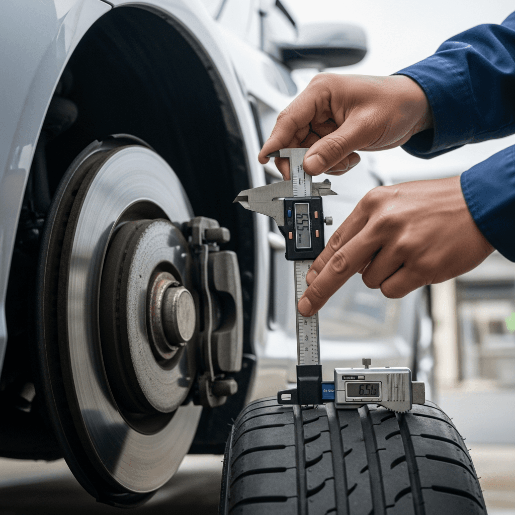 スポーツカーはブレーキとタイヤが査定の最重要項目。パッド残量6mm以上、タイヤ溝5mm以上を写真+ノギス測定値で証明すれば、「走行性能良好」の安心感を与え+8~12万円の評価UP。