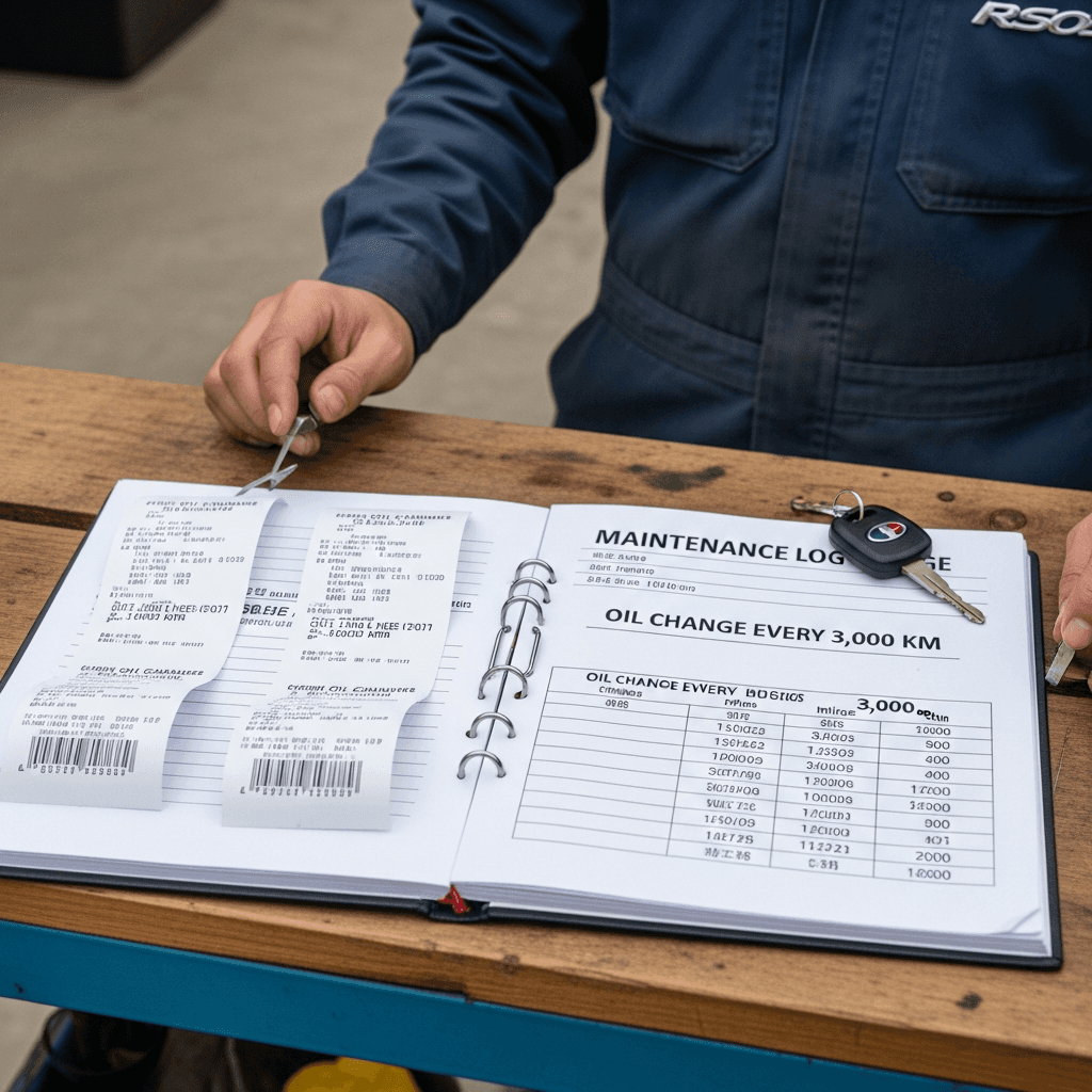 エンジンオイル交換3,000km毎の証明書で信頼獲得!