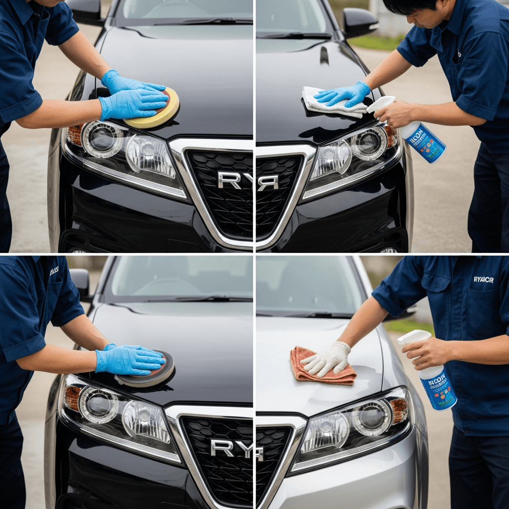 リューギEXはヘッドライトの黄ばみとボディの鉄粉が第一印象を損ねます。研磨+鉄粉除去クリーナー+ワックスで輝きを取り戻せば「程度良好」と判断され+4~7万円の効果。