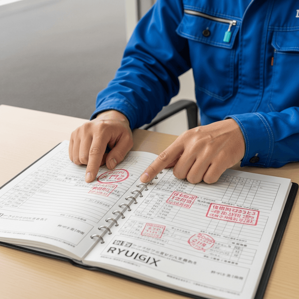 リューギEXの整備記録簿に定期点検(12ヶ月・24ヶ月)の履歴が全て記載されていれば「管理の行き届いた車」と高評価。特にエンジンオイル交換履歴は重要で+6~9万円の効果。