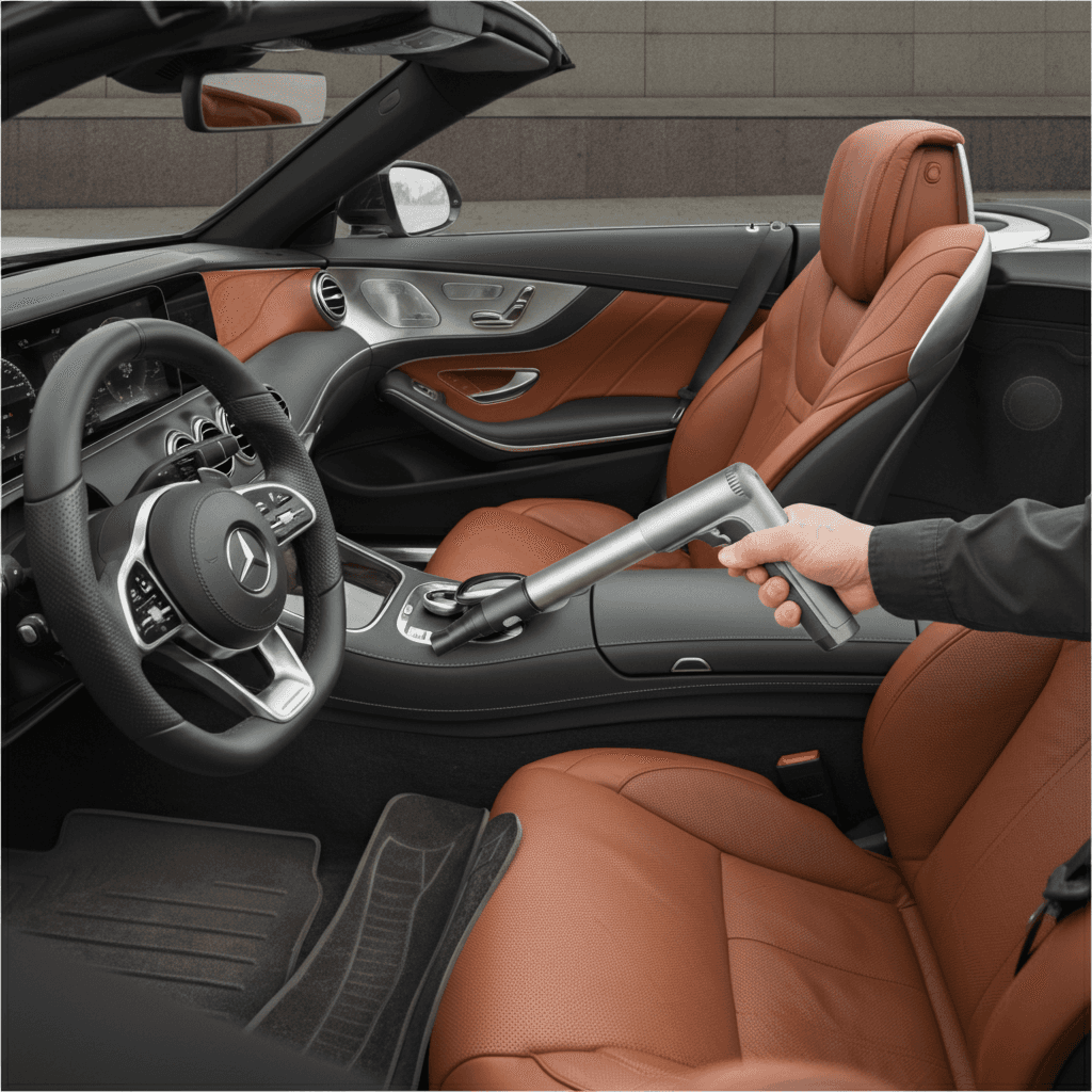 Sクラスカブリオレは第一印象が査定の8割を決めます。シート隙間のゴミ除去、マット洗浄、樹脂パーツ艶出しで新車級の清潔感に。特に臭いゼロなら「禁煙車」扱いで+5~8万円UP。