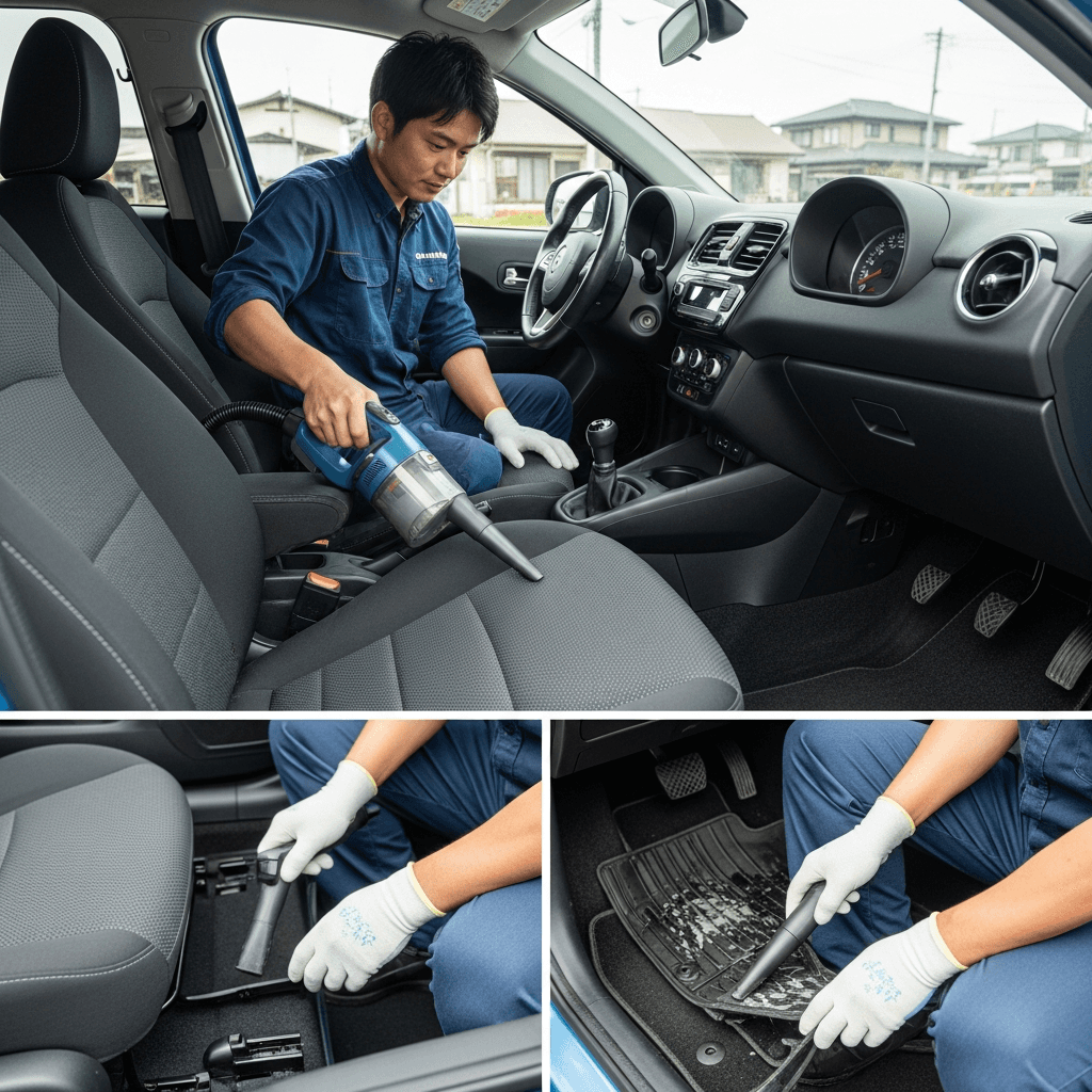 S1スポーツバックは第一印象が査定の8割を決めます。シート隙間のゴミ除去、マット洗浄、樹脂パーツ艶出しで新車級の清潔感に。特に臭いゼロなら「禁煙車」扱いで+5~8万円UP。