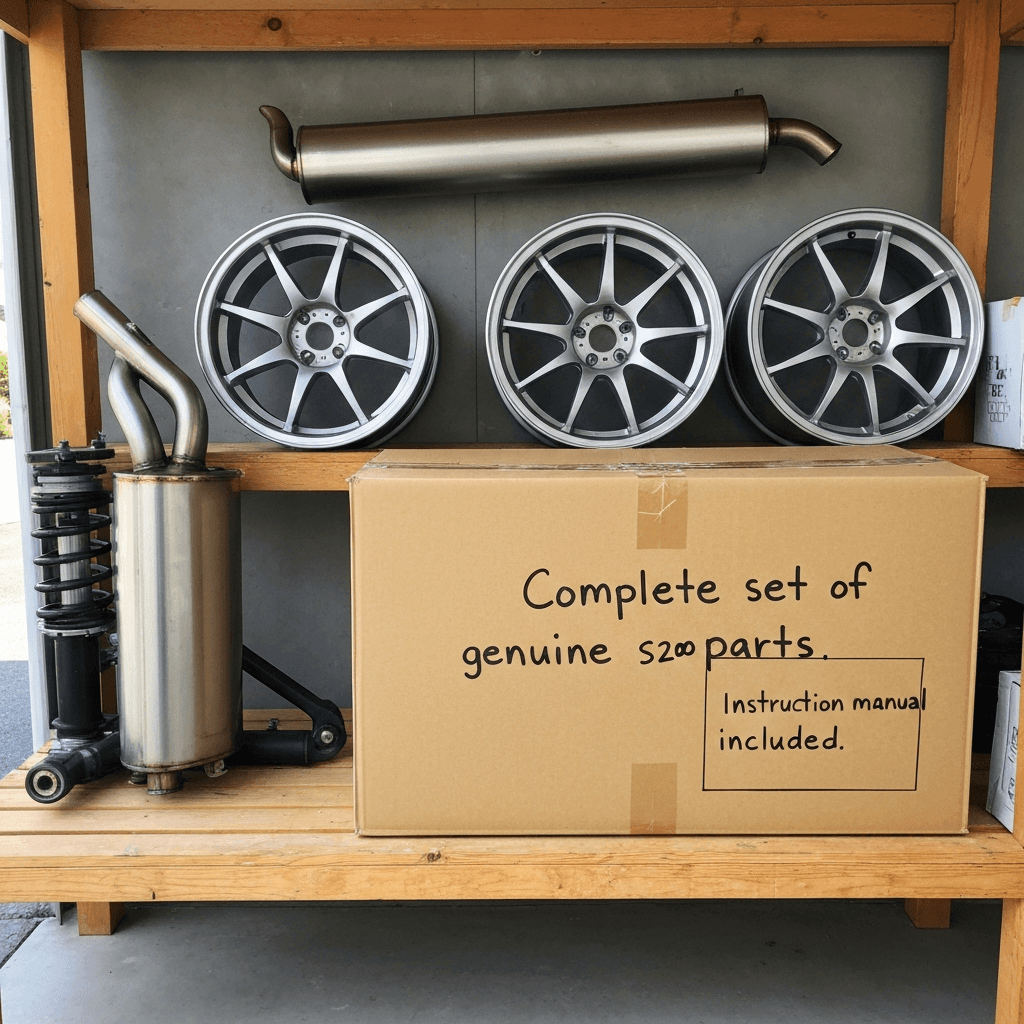 S2000はカスタム車両が多いですが、純正マフラー・サスペンション・ホイールが保管されていれば査定額は下がりません。「純正戻し可能」をアピールすることで+7~10万円の価値創出。
