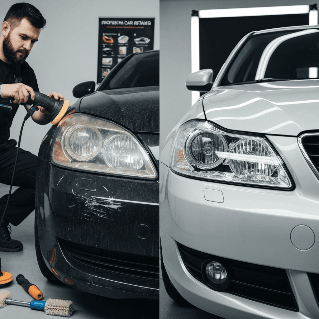 ヘッドライト黄ばみ除去+ボディ鉄粉除去で輝き復活!