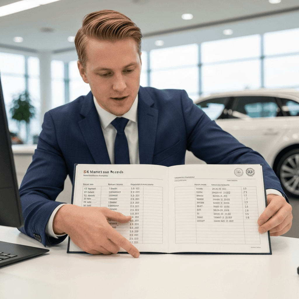 S4アバントの整備記録簿に定期点検(12ヶ月・24ヶ月)の履歴が全て記載されていれば「管理の行き届いた車」と高評価。特にエンジンオイル交換履歴は重要で+6~9万円の効果。