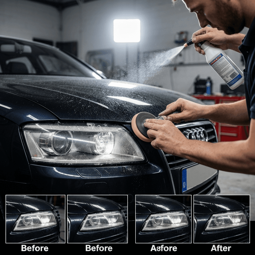 ヘッドライト黄ばみ除去+ボディ鉄粉除去で輝き復活!