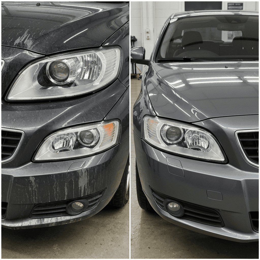 S40はヘッドライトの黄ばみとボディの鉄粉が第一印象を損ねます。研磨+鉄粉除去クリーナー+ワックスで輝きを取り戻せば「程度良好」と判断され+4~7万円の効果。