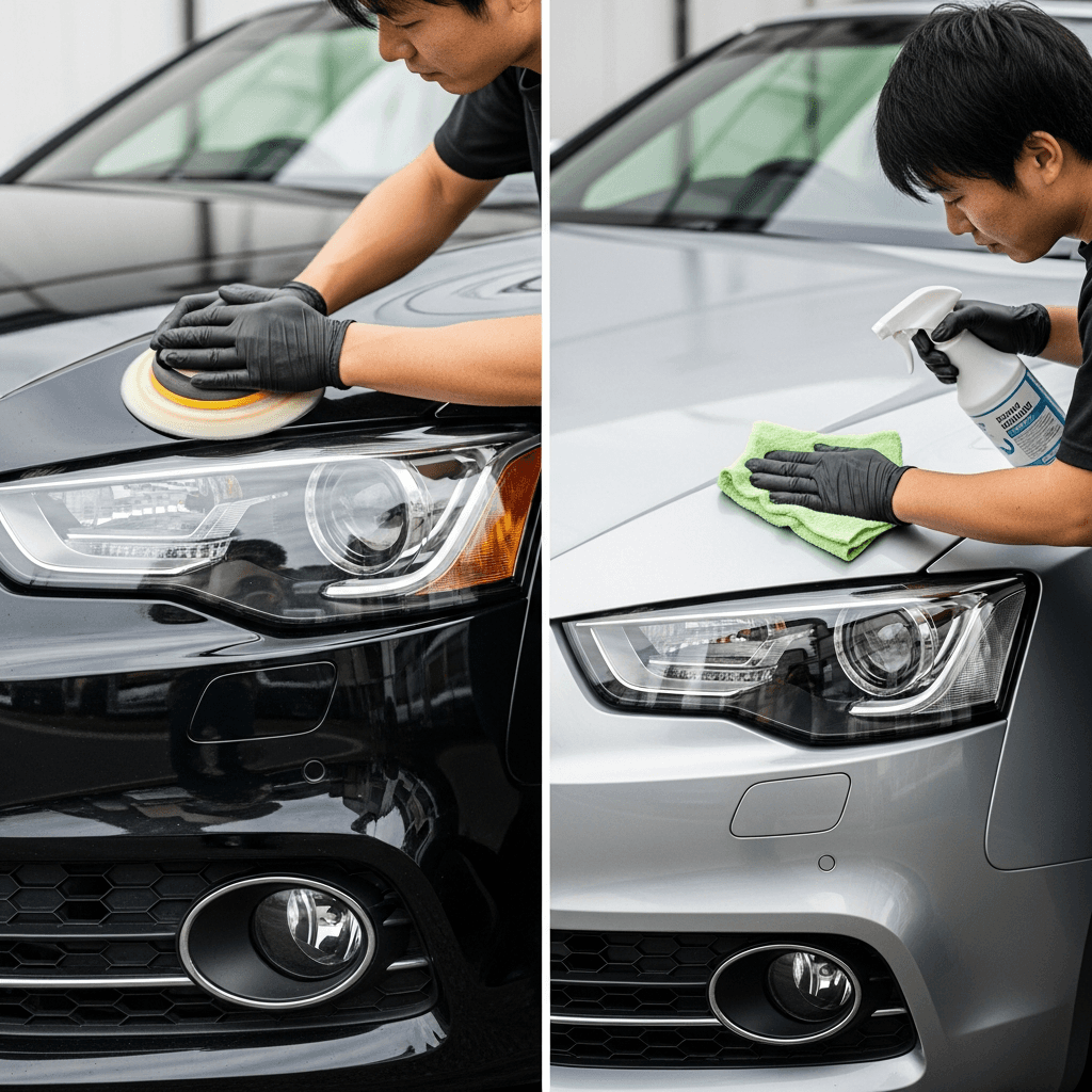 S5カブリオレはヘッドライトの黄ばみとボディの鉄粉が第一印象を損ねます。研磨+鉄粉除去クリーナー+ワックスで輝きを取り戻せば「程度良好」と判断され+4~7万円の効果。