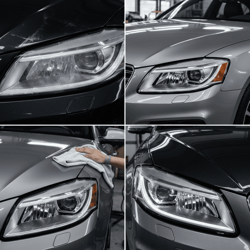 ヘッドライト黄ばみ除去+ボディ鉄粉除去で輝き復活!