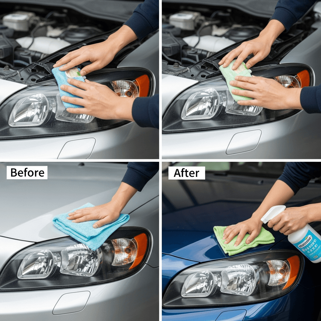 ヘッドライト黄ばみ除去+ボディ鉄粉除去で輝き復活!