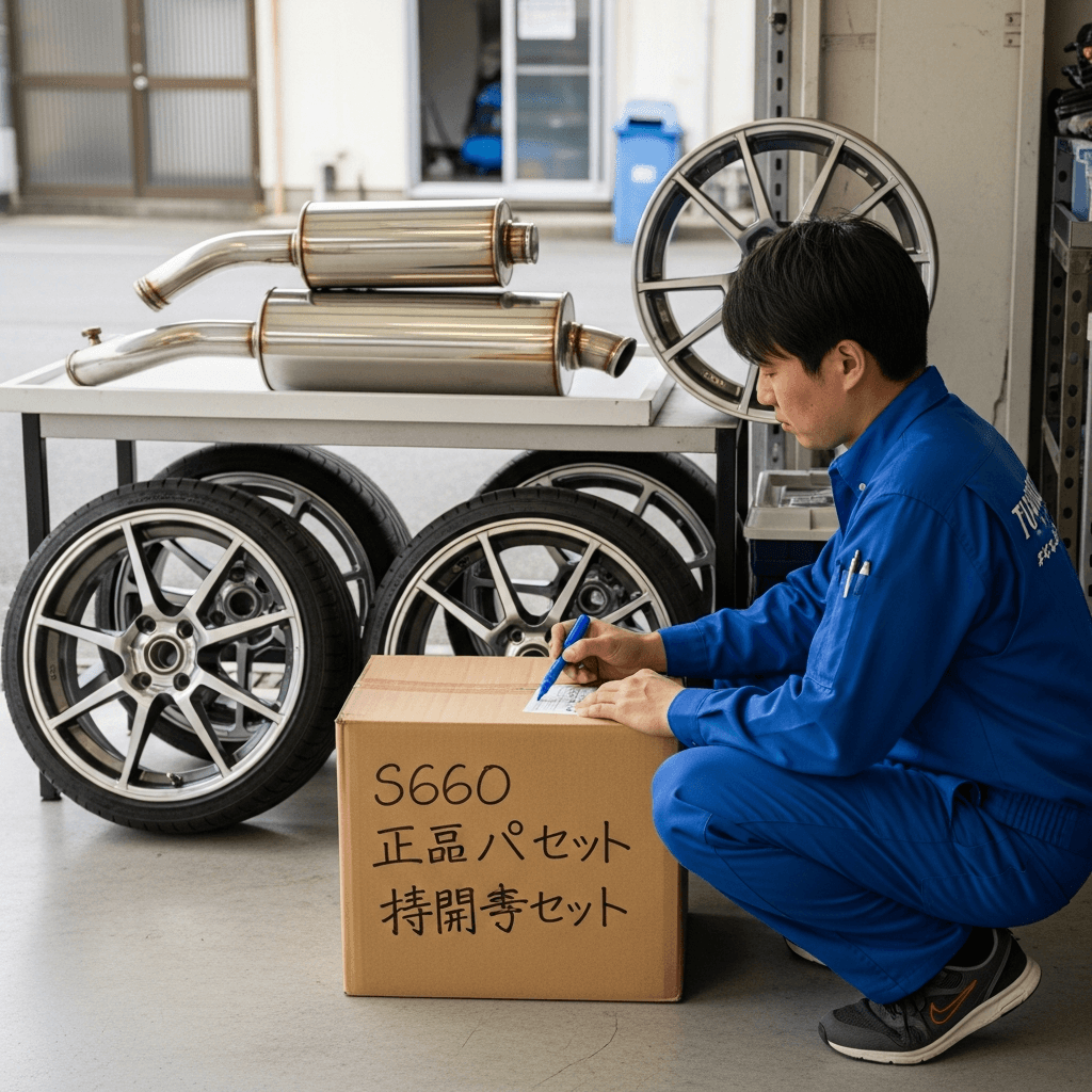 S660はカスタム車両が多いですが、純正マフラー・サスペンション・ホイールが保管されていれば査定額は下がりません。「純正戻し可能」をアピールすることで+7~10万円の価値創出。