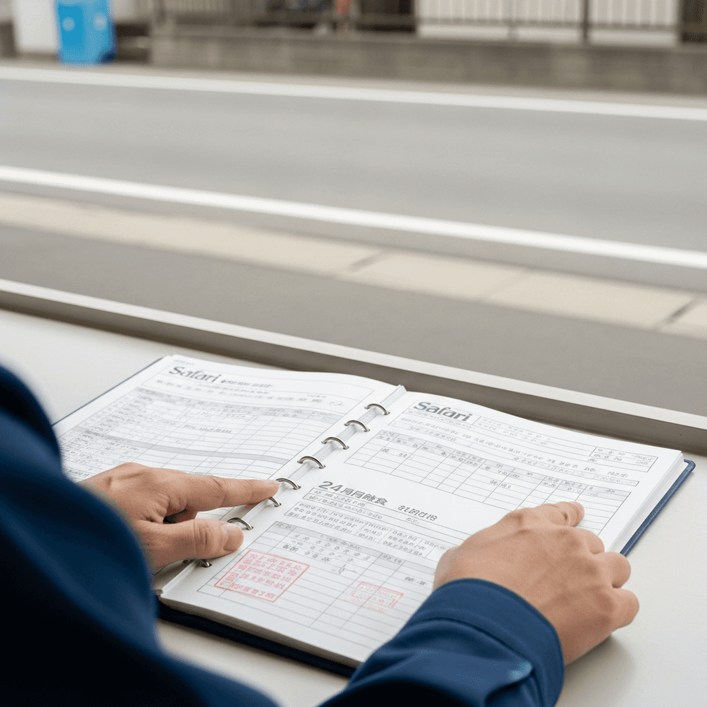 サファリの整備記録簿に定期点検(12ヶ月・24ヶ月)の履歴が全て記載されていれば「管理の行き届いた車」と高評価。特にエンジンオイル交換履歴は重要で+6~9万円の効果。