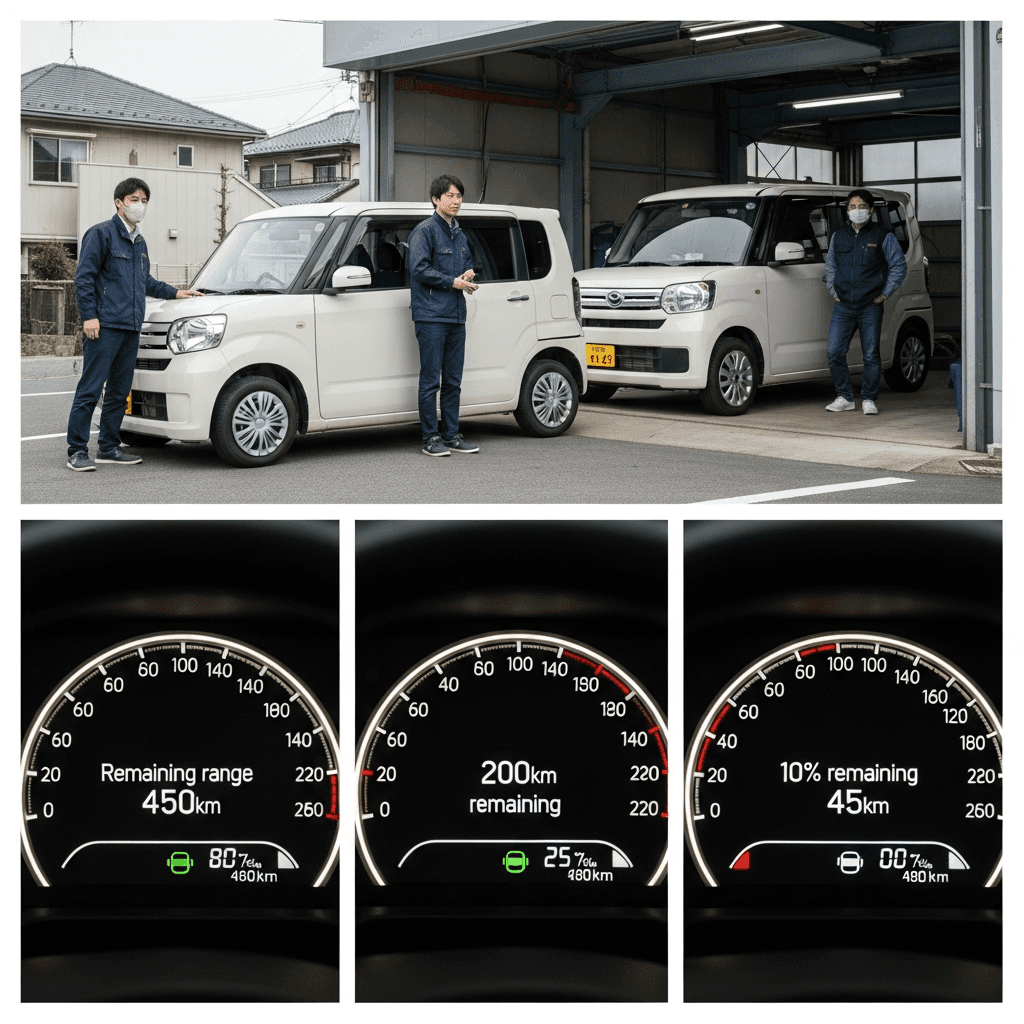 満充電から通常走行→残量10%までの実測データ(写真+メモ)を提示すれば「カタログ値通り」の信頼獲得。航続距離不安が購入障壁のEV車で+5~8万円の効果。