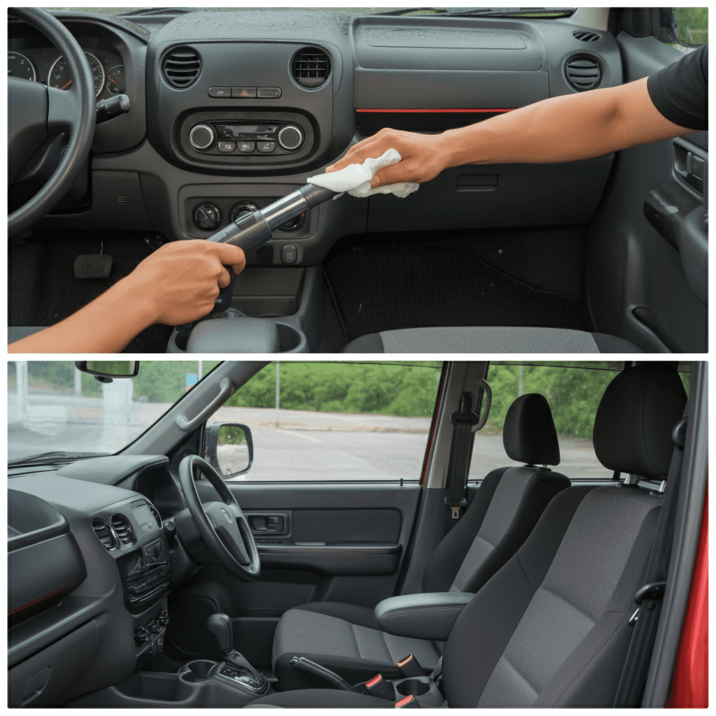 軽自動車は女性・高齢者の次オーナーが多く、清潔感が最重視されます。シート・フロアマット・ダッシュボードを徹底清掃し、消臭剤で無臭化すれば+4~7万円の効果。