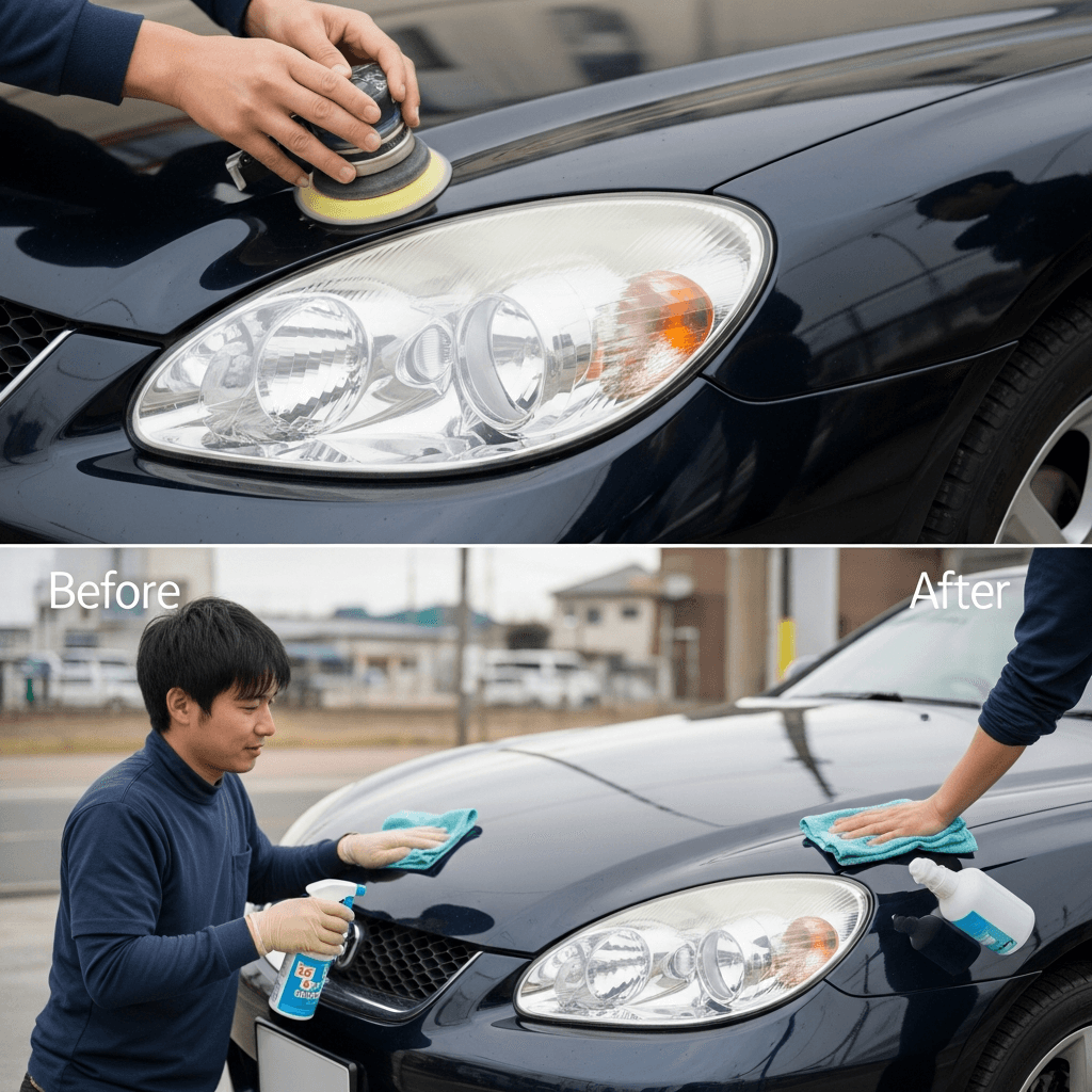ヘッドライト黄ばみ除去+ボディ鉄粉除去で輝き復活!