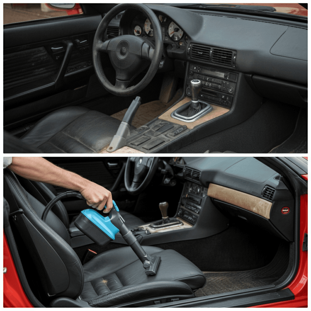 SCは第一印象が査定の8割を決めます。シート隙間のゴミ除去、マット洗浄、樹脂パーツ艶出しで新車級の清潔感に。特に臭いゼロなら「禁煙車」扱いで+5~8万円UP。