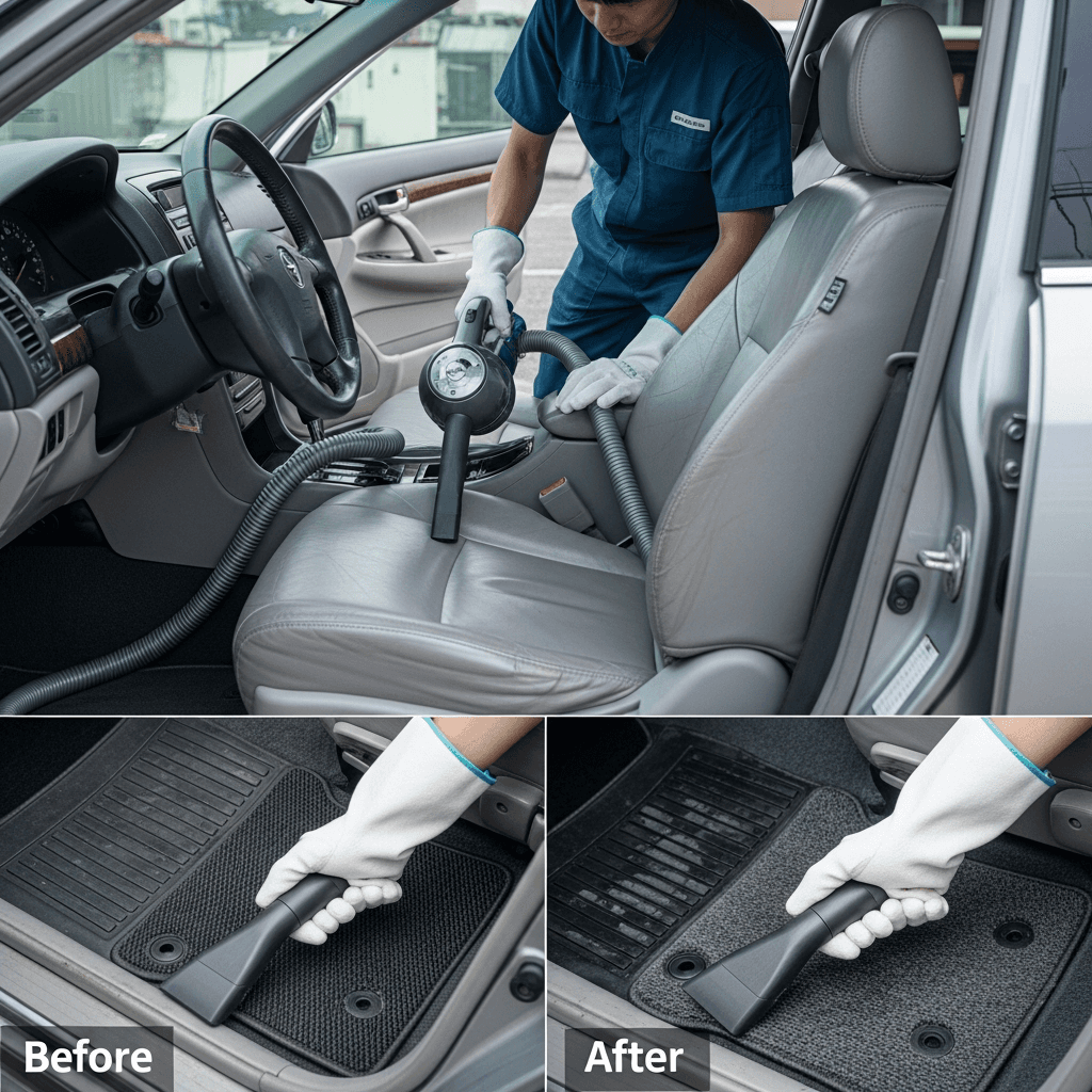 セプターは第一印象が査定の8割を決めます。シート隙間のゴミ除去、マット洗浄、樹脂パーツ艶出しで新車級の清潔感に。特に臭いゼロなら「禁煙車」扱いで+5~8万円UP。