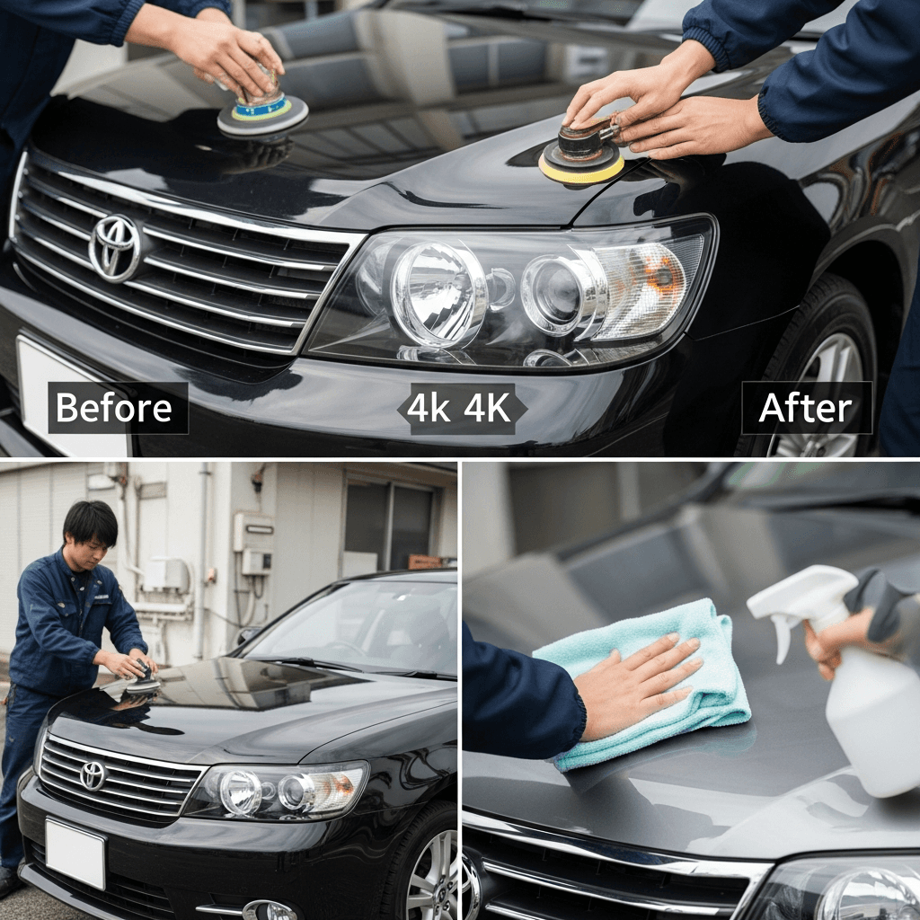 セプターワゴンはヘッドライトの黄ばみとボディの鉄粉が第一印象を損ねます。研磨+鉄粉除去クリーナー+ワックスで輝きを取り戻せば「程度良好」と判断され+4~7万円の効果。