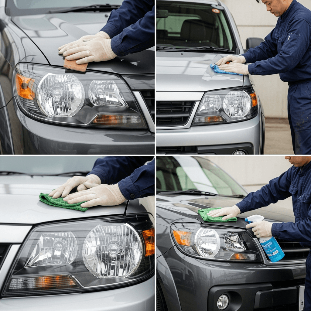 ヘッドライト黄ばみ除去+ボディ鉄粉除去で輝き復活!