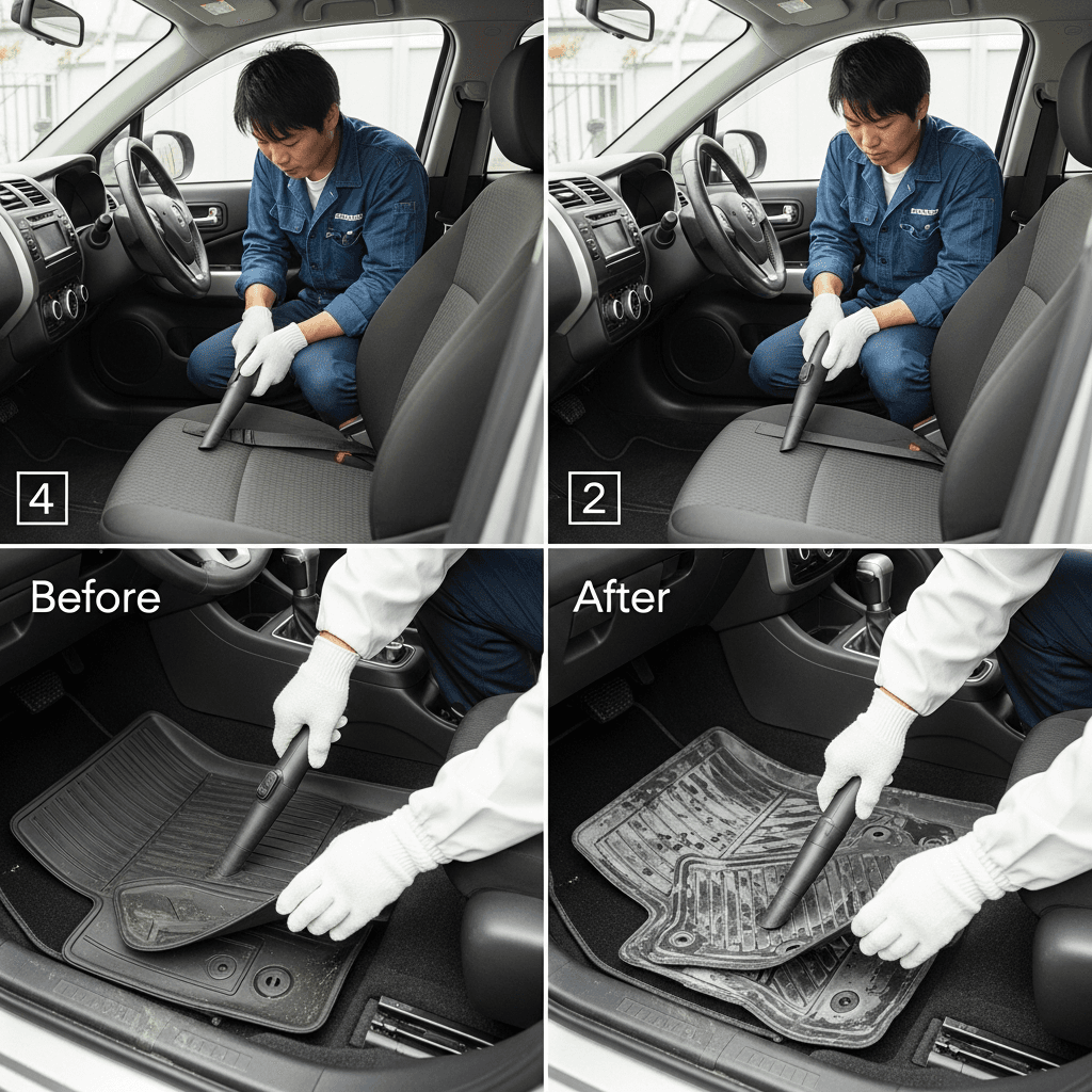スクラムは第一印象が査定の8割を決めます。シート隙間のゴミ除去、マット洗浄、樹脂パーツ艶出しで新車級の清潔感に。特に臭いゼロなら「禁煙車」扱いで+5~8万円UP。