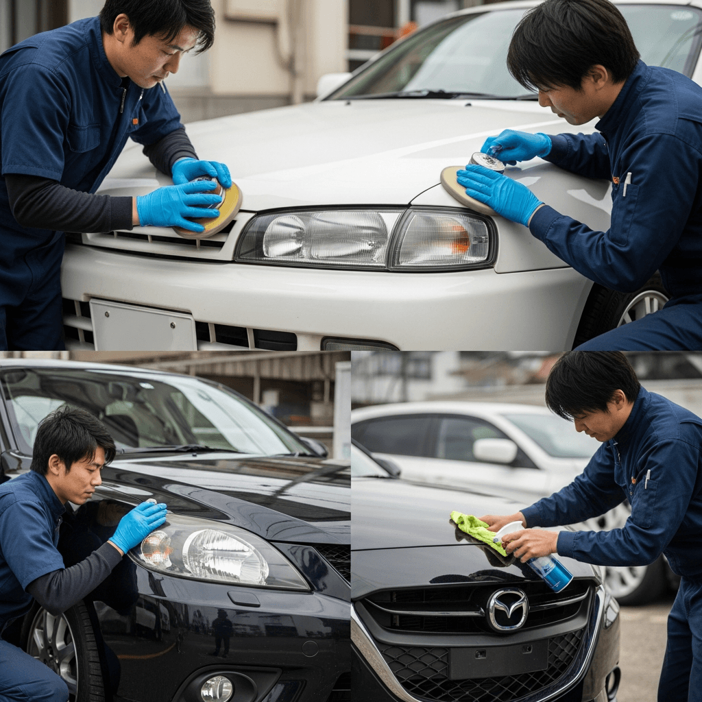 センティアはヘッドライトの黄ばみとボディの鉄粉が第一印象を損ねます。研磨+鉄粉除去クリーナー+ワックスで輝きを取り戻せば「程度良好」と判断され+4~7万円の効果。