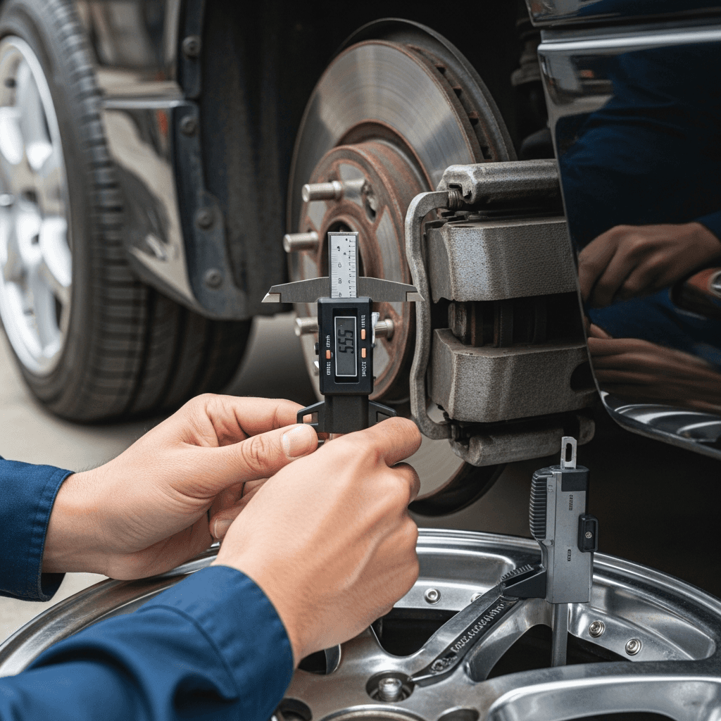 スポーツカーはブレーキとタイヤが査定の最重要項目。パッド残量6mm以上、タイヤ溝5mm以上を写真+ノギス測定値で証明すれば、「走行性能良好」の安心感を与え+8~12万円の評価UP。
