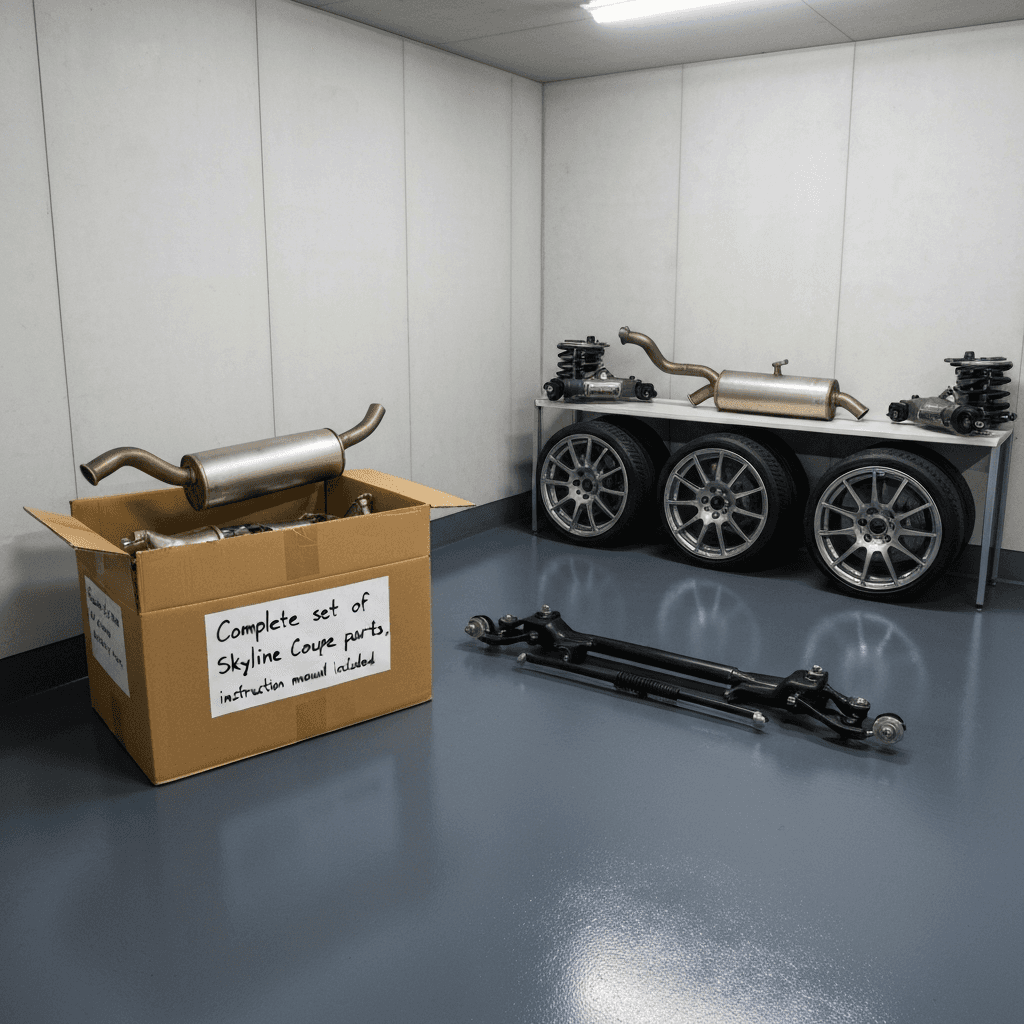 スカイラインクーペはカスタム車両が多いですが、純正マフラー・サスペンション・ホイールが保管されていれば査定額は下がりません。「純正戻し可能」をアピールすることで+7~10万円の価値創出。