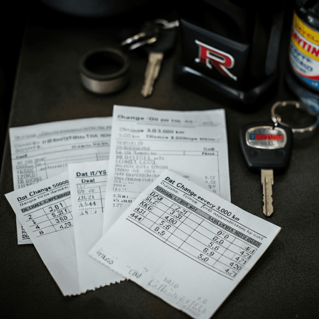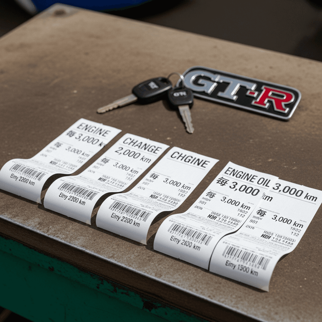 スカイラインGT-Rセダンはスポーツ走行を前提とした車。エンジンオイル交換を3,000~5,000km毎に実施した記録(レシート+整備記録簿)があれば「エンジン管理完璧」と評価され、査定額が大幅UP。+10~15万円の効果が期待できます。