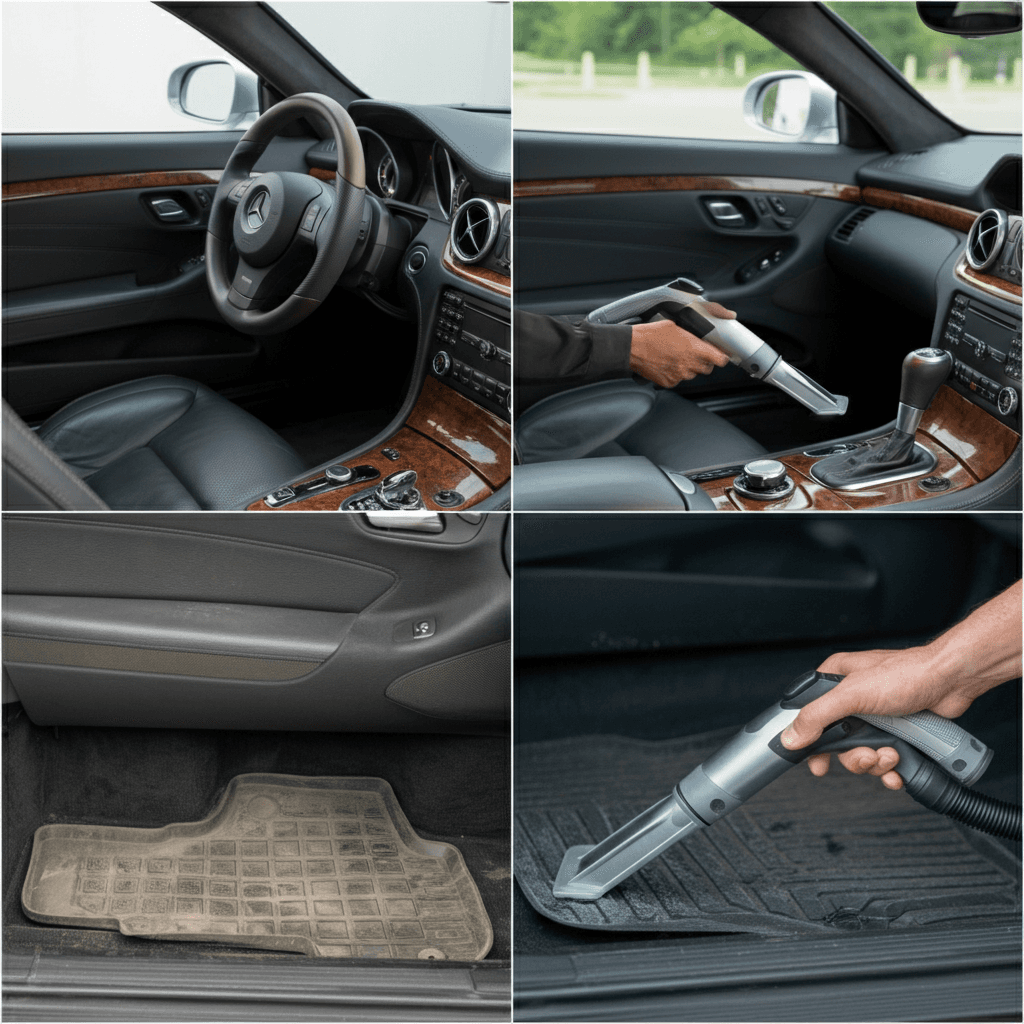 SLクラスは第一印象が査定の8割を決めます。シート隙間のゴミ除去、マット洗浄、樹脂パーツ艶出しで新車級の清潔感に。特に臭いゼロなら「禁煙車」扱いで+5~8万円UP。