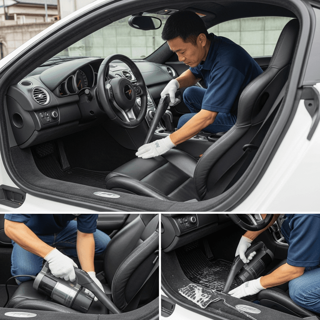 SLRクラス マクラーレンは第一印象が査定の8割を決めます。シート隙間のゴミ除去、マット洗浄、樹脂パーツ艶出しで新車級の清潔感に。特に臭いゼロなら「禁煙車」扱いで+5~8万円UP。