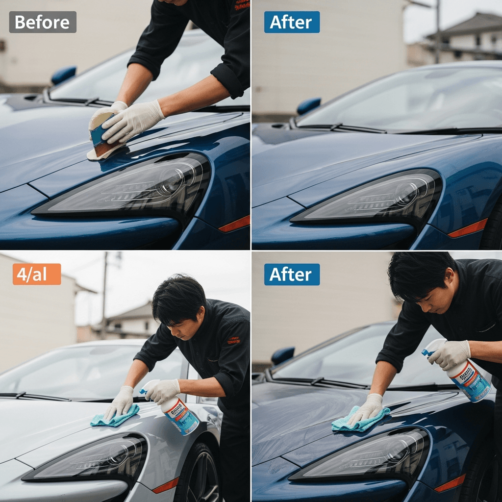 ヘッドライト黄ばみ除去+ボディ鉄粉除去で輝き復活!