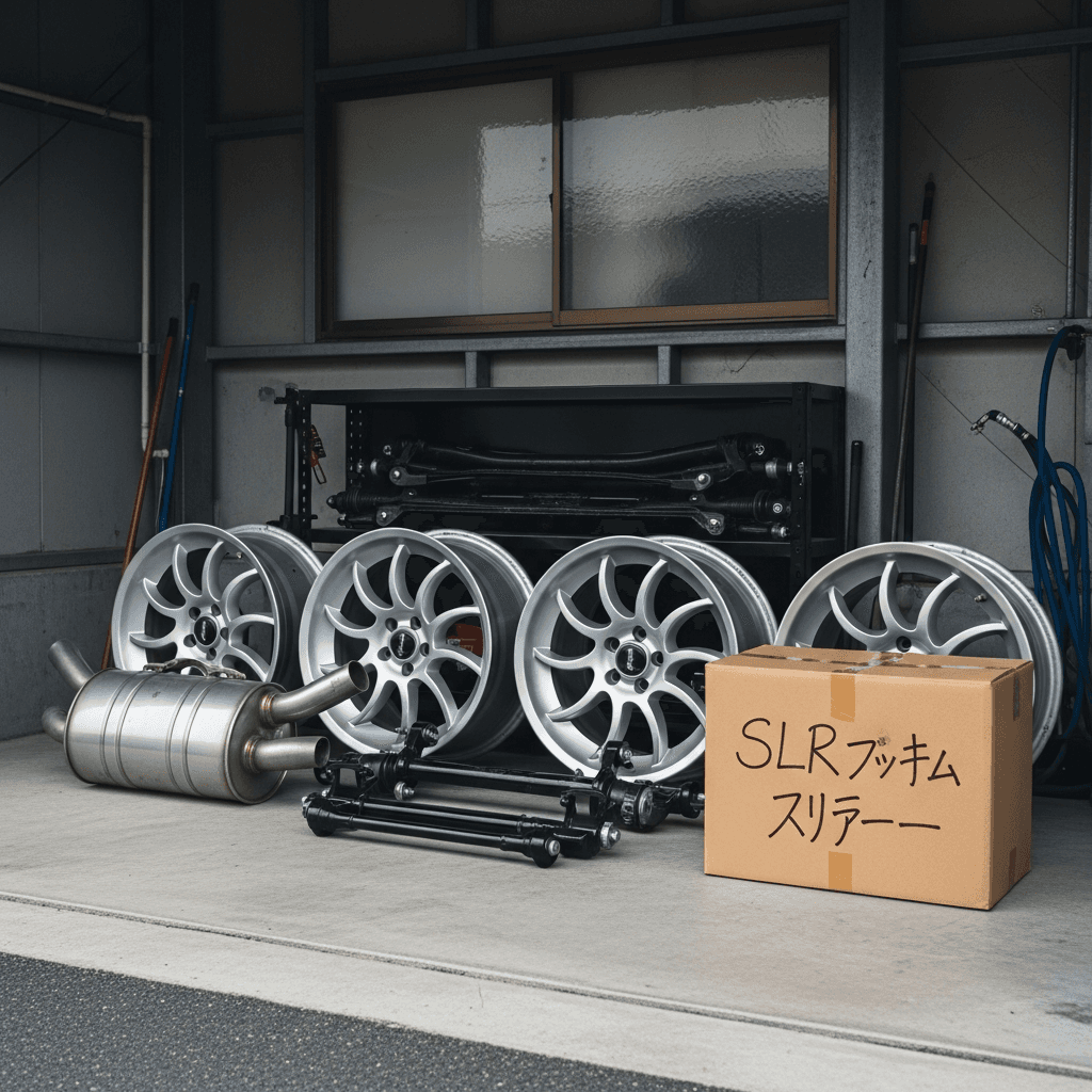 SLRクラス マクラーレン ロードスターはカスタム車両が多いですが、純正マフラー・サスペンション・ホイールが保管されていれば査定額は下がりません。「純正戻し可能」をアピールすることで+7~10万円の価値創出。