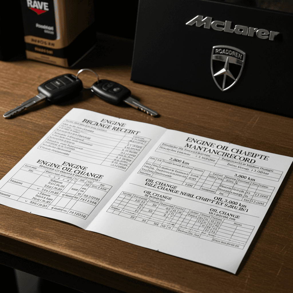 SLRクラス マクラーレン ロードスターはスポーツ走行を前提とした車。エンジンオイル交換を3,000~5,000km毎に実施した記録(レシート+整備記録簿)があれば「エンジン管理完璧」と評価され、査定額が大幅UP。+10~15万円の効果が期待できます。