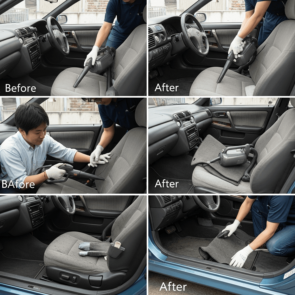 ソアラエアロキャビンは第一印象が査定の8割を決めます。シート隙間のゴミ除去、マット洗浄、樹脂パーツ艶出しで新車級の清潔感に。特に臭いゼロなら「禁煙車」扱いで+5~8万円UP。