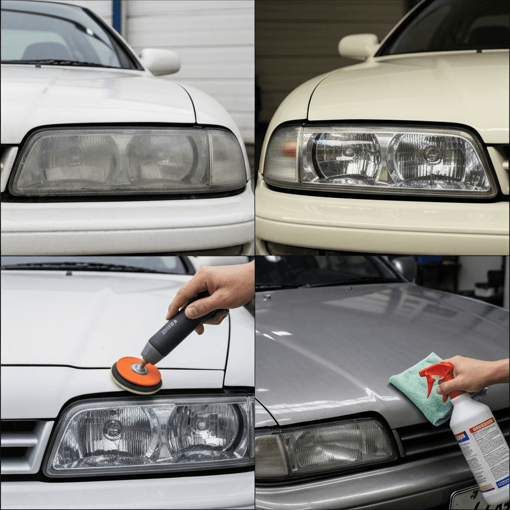 ヘッドライト黄ばみ除去+ボディ鉄粉除去で輝き復活!