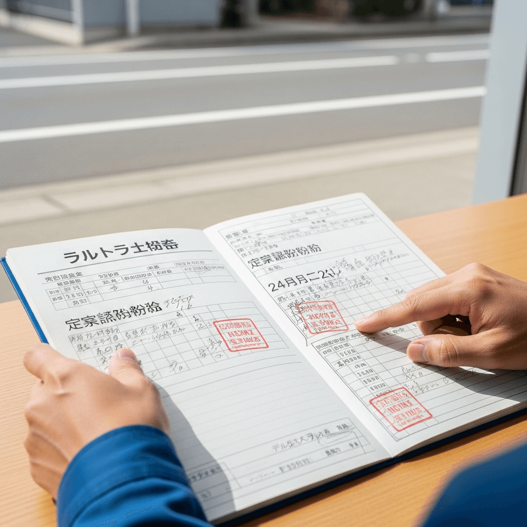 ソルテラの整備記録簿に定期点検(12ヶ月・24ヶ月)の履歴が全て記載されていれば「管理の行き届いた車」と高評価。特にエンジンオイル交換履歴は重要で+6~9万円の効果。