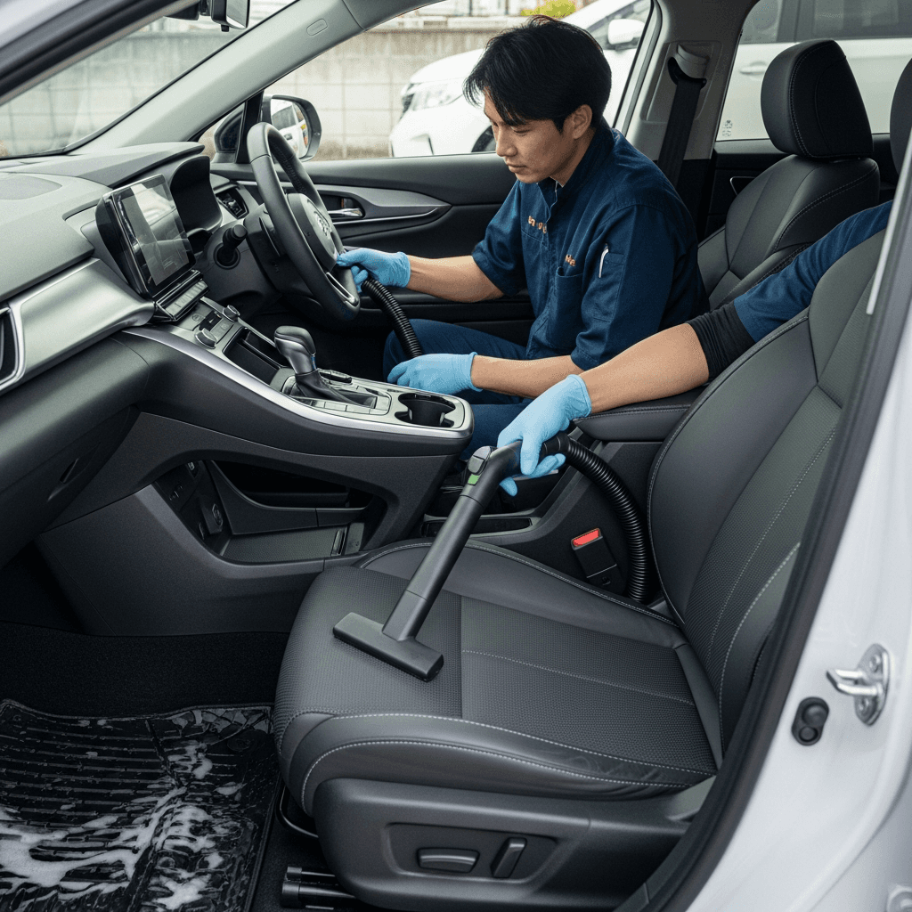 ソルテラは第一印象が査定の8割を決めます。シート隙間のゴミ除去、マット洗浄、樹脂パーツ艶出しで新車級の清潔感に。特に臭いゼロなら「禁煙車」扱いで+5~8万円UP。