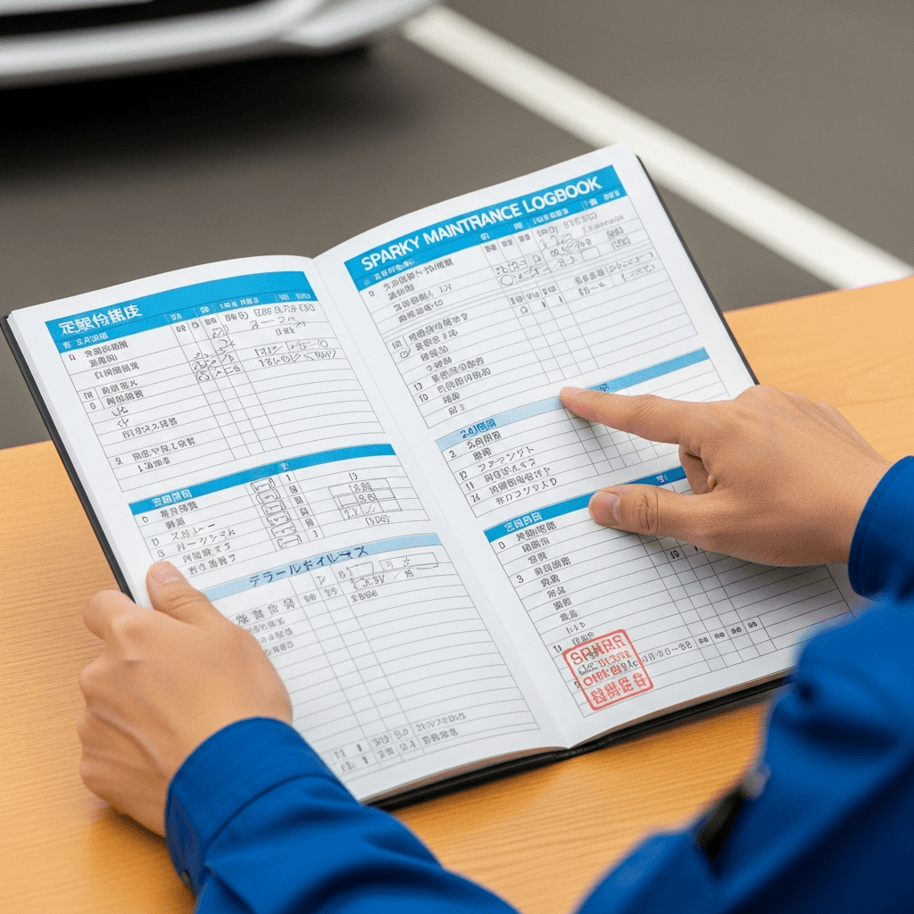 スパーキーの整備記録簿に定期点検(12ヶ月・24ヶ月)の履歴が全て記載されていれば「管理の行き届いた車」と高評価。特にエンジンオイル交換履歴は重要で+6~9万円の効果。