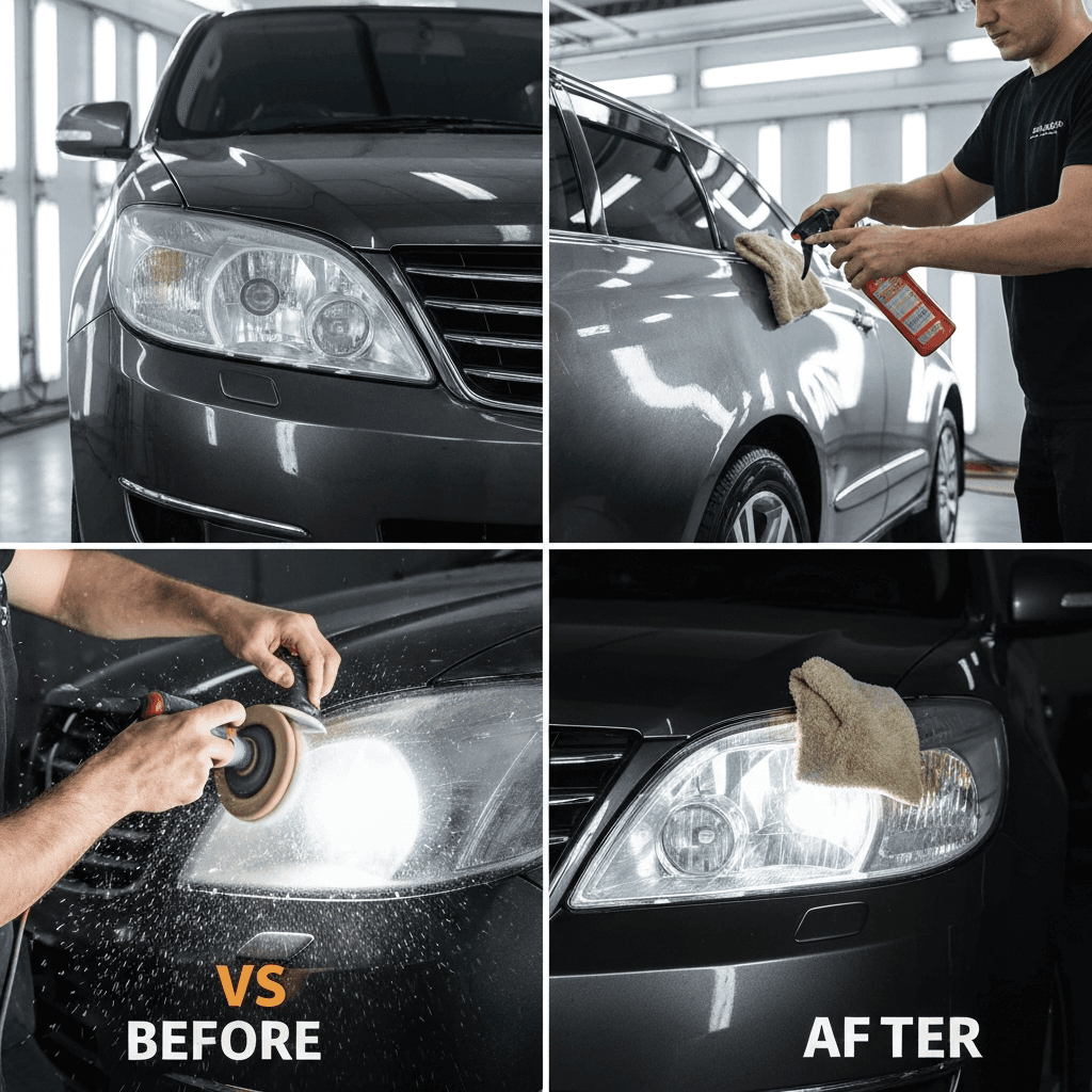 ヘッドライト黄ばみ除去+ボディ鉄粉除去で輝き復活!