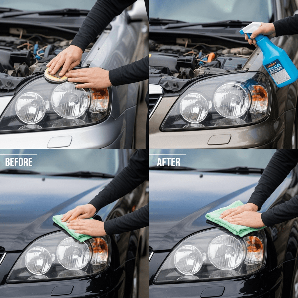 ヘッドライト黄ばみ除去+ボディ鉄粉除去で輝き復活!