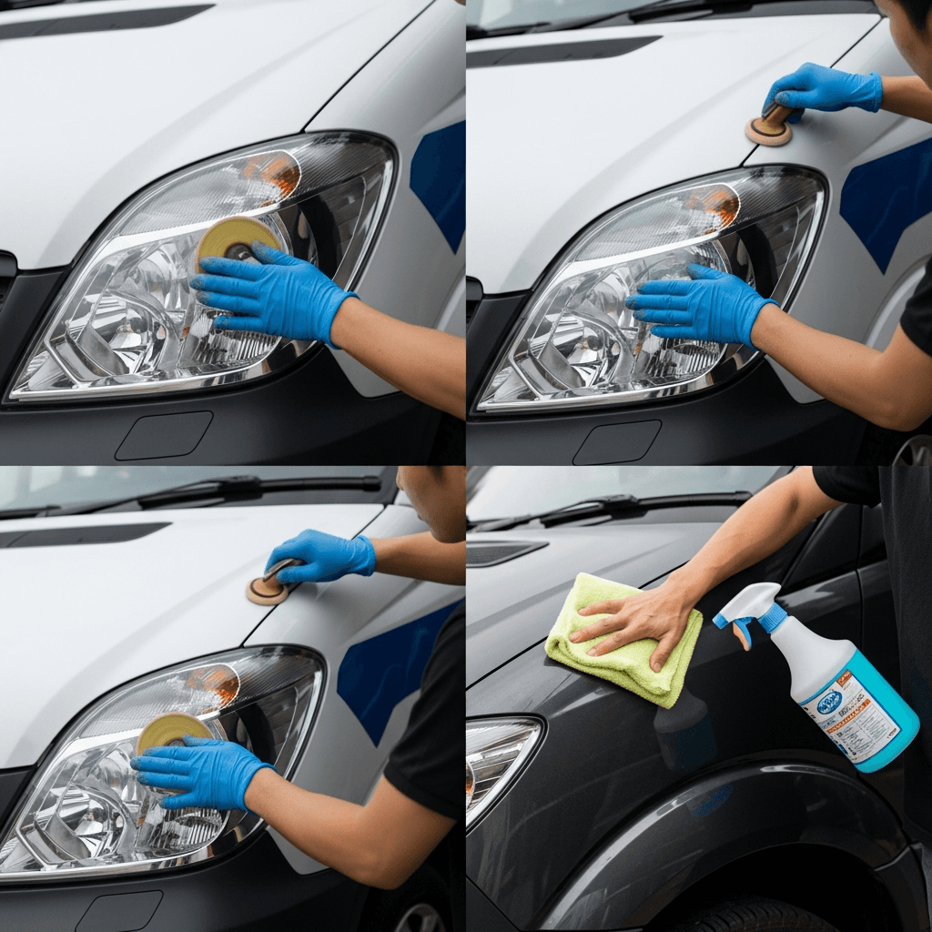 スプリンターはヘッドライトの黄ばみとボディの鉄粉が第一印象を損ねます。研磨+鉄粉除去クリーナー+ワックスで輝きを取り戻せば「程度良好」と判断され+4~7万円の効果。