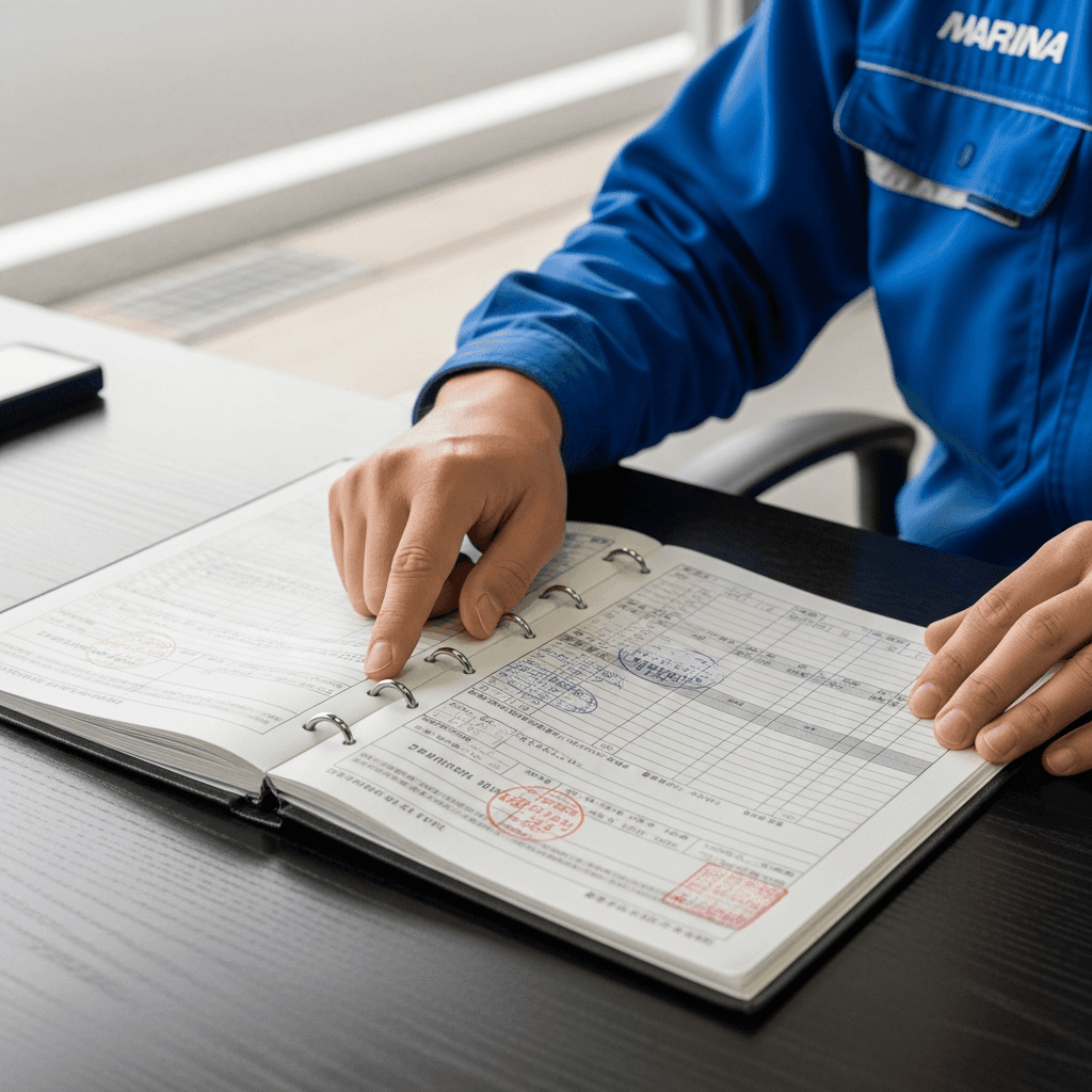 スプリンターマリノの整備記録簿に定期点検(12ヶ月・24ヶ月)の履歴が全て記載されていれば「管理の行き届いた車」と高評価。特にエンジンオイル交換履歴は重要で+6~9万円の効果。