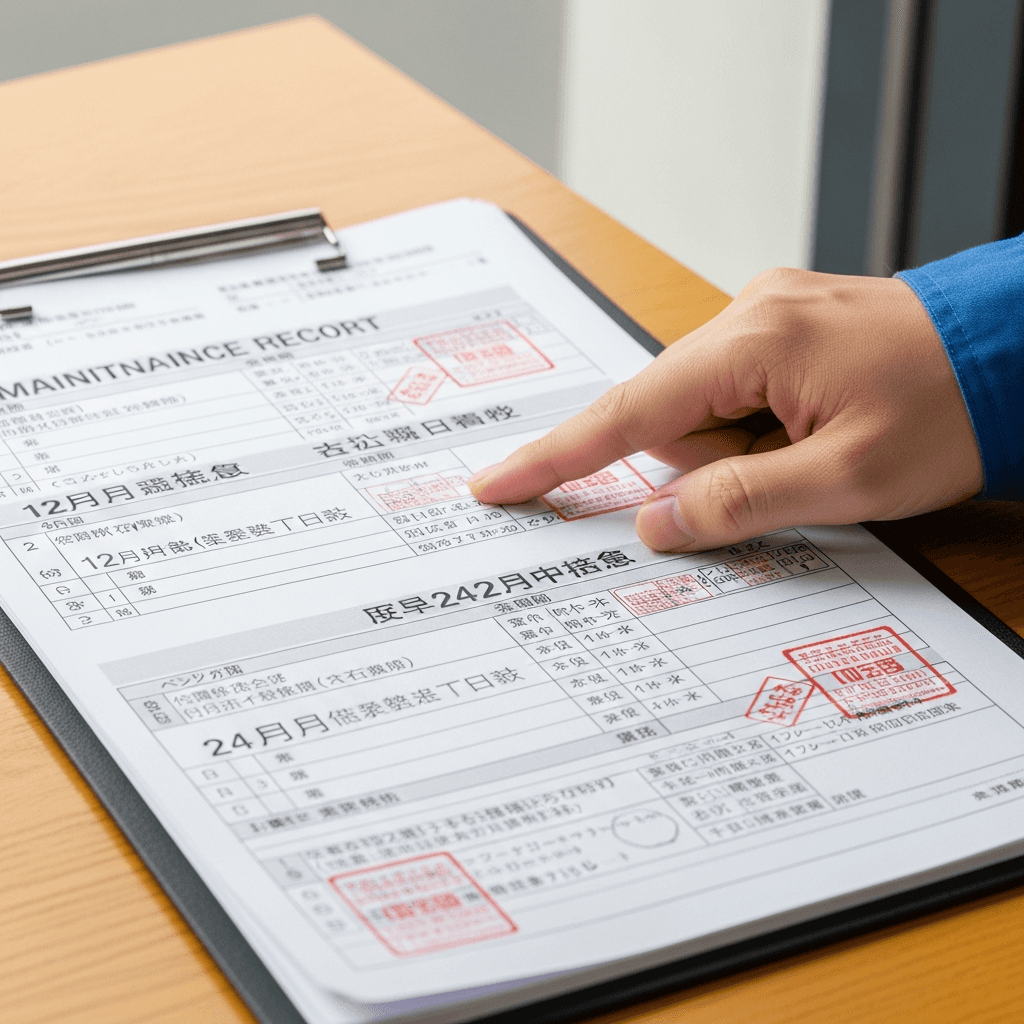 スプリンターバンの整備記録簿に定期点検(12ヶ月・24ヶ月)の履歴が全て記載されていれば「管理の行き届いた車」と高評価。特にエンジンオイル交換履歴は重要で+6~9万円の効果。